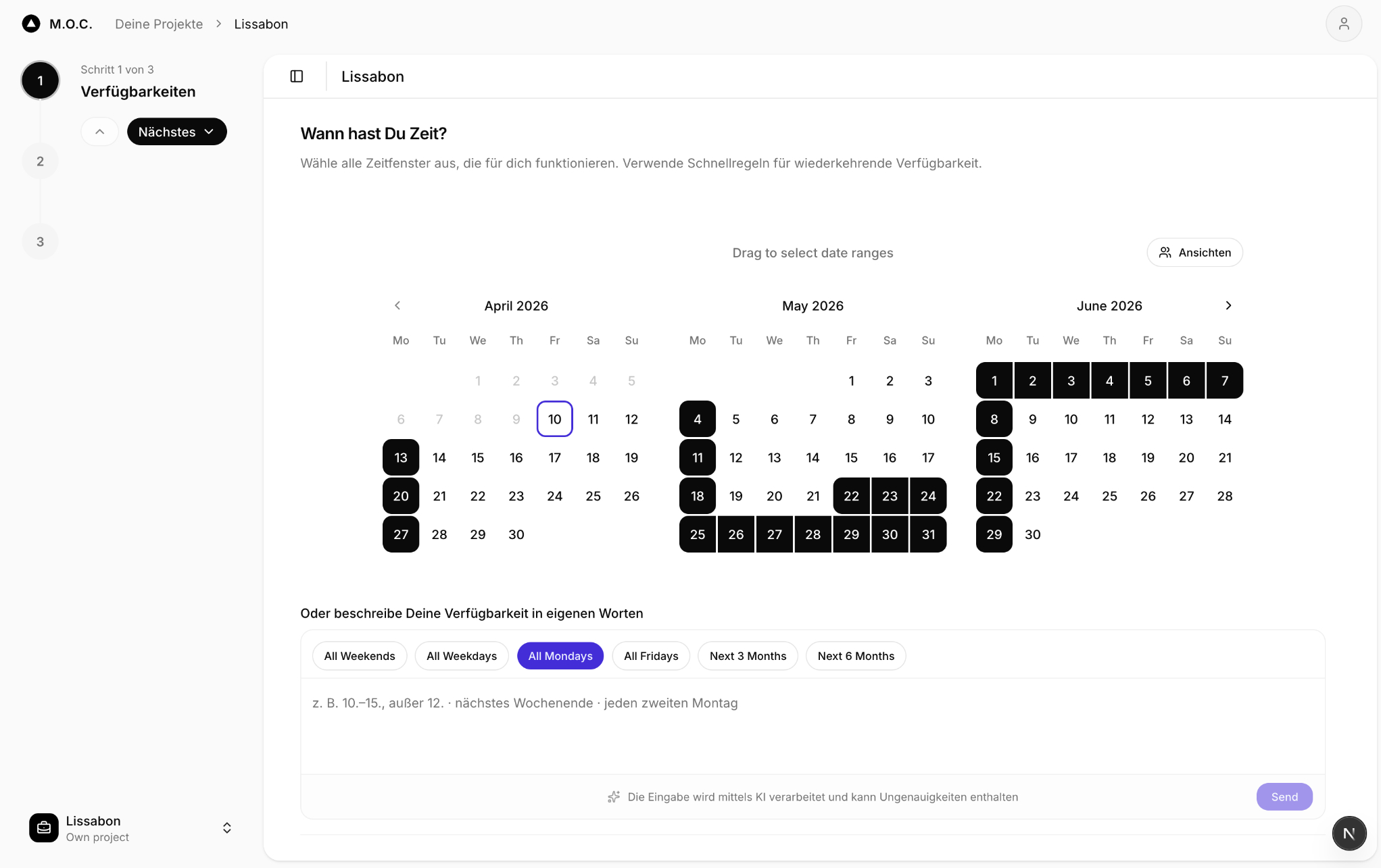 Sammle Ideen, finde Termine und erstelle in Sekunden einen fertigen Plan – automatisch.
